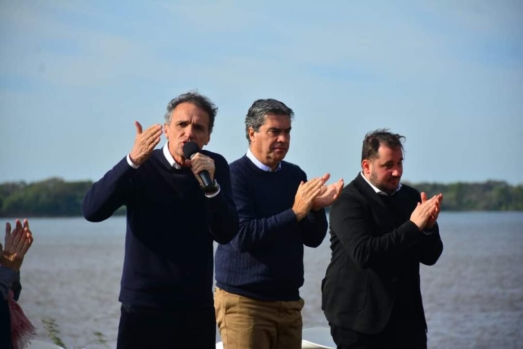 🌉En Puerto Vilela el intendente Pio Sander junto al anfitrión de esa localidad Victor Rea, el gobernador Jorge Milton Capitanich, ministro Gabriel Katopodis, el ministro de Planificación, Economía e Infraestructura Santiago Pérez Pons, intendentes y ministros, participaron de la presentación del proyecto del «Segundo Puente Chaco – Corrientes»una de las obras más importantes para la provincia.