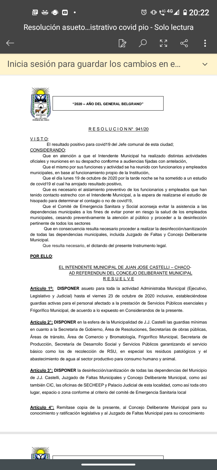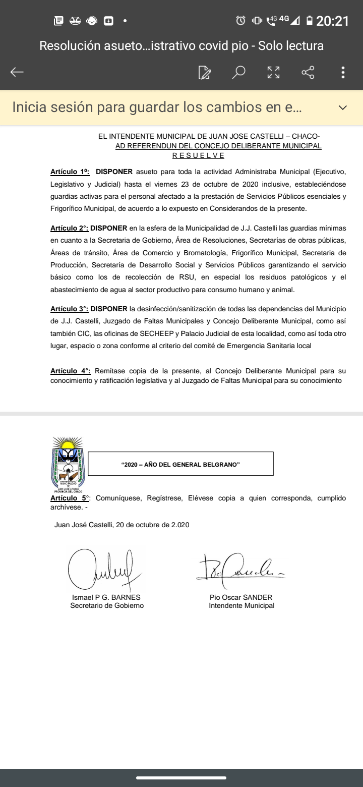 Artículo 2°: DISPONER en la esfera de la Municipalidad de J.J. Castelli las guardias mínimas