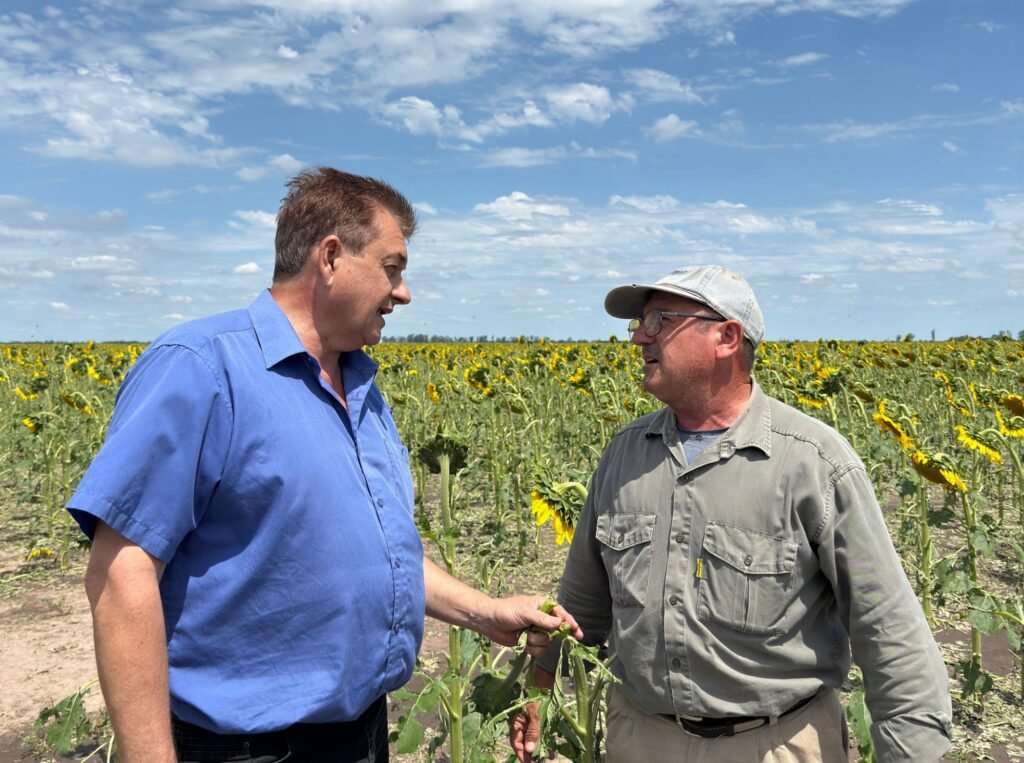 En este sentido, el ministro tomó contacto con el intendente de Hermoso Campo, Diógenes Requena, y mantuvo diálogo directo con los productores afectados. En su recorrida estuvo acompañado por el delegado del Ministerio, Rubén Sphan; el concejal Nelson Ivancovich; productores de la zona y peritos de las empresas aseguradoras que trabajan junto a la Provincia en la cobertura de cultivos de girasol. El Ministerio continuará monitoreando la situación climática y avanzará en la consolidación del informe final de daños para definir medidas de acompañamiento y recuperación productiva.