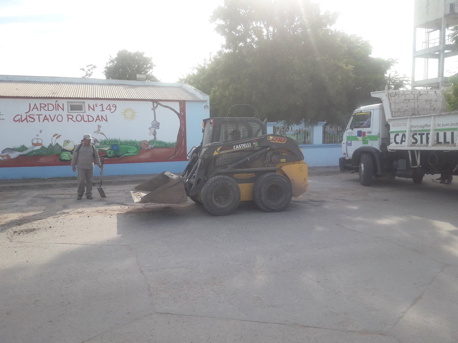 Este lunes por la mañana los operarios realizaron trabajos de limpieza y mantenimiento en el Jardin de Infantes N° 149 Gustavo Roldan.