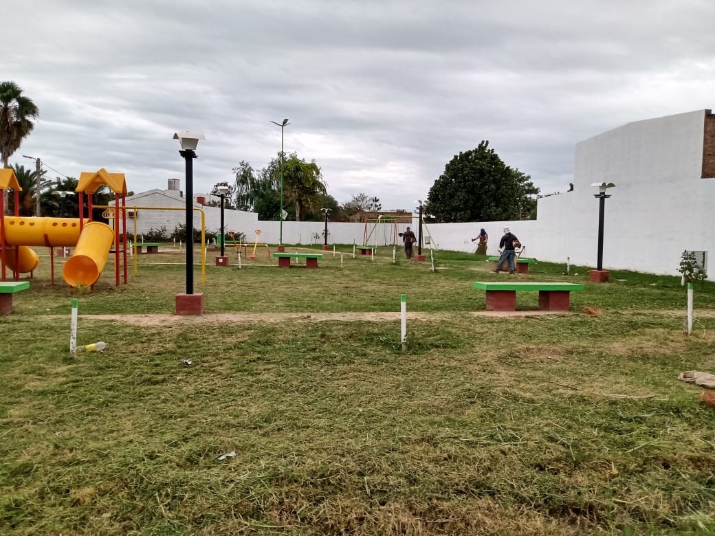 La Subsecretaría de Relaciones con la Comunidad, realizó hoy 26 de junio dos importantes intervenciones realizando desmalezado en la plaza de Quinta Giménez y corte de pasto en veredas y cunetas de Quinta 24.