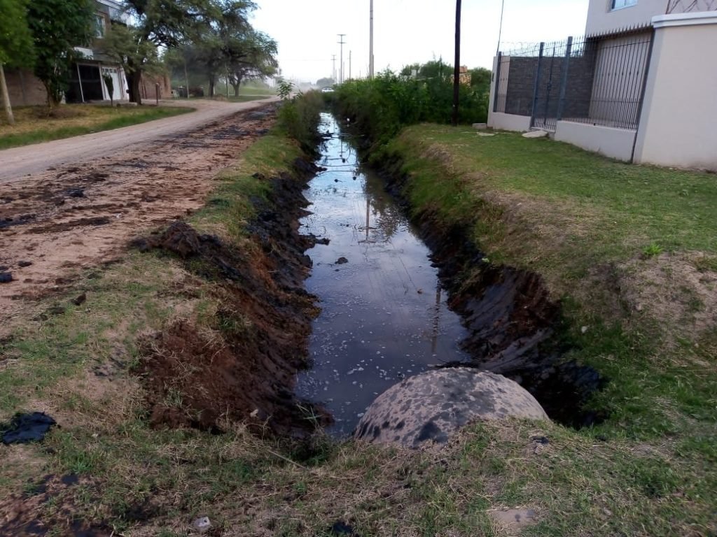 Limpieza de canales por calle Chubut desde la represa cuadrada hacia el canal número uno.