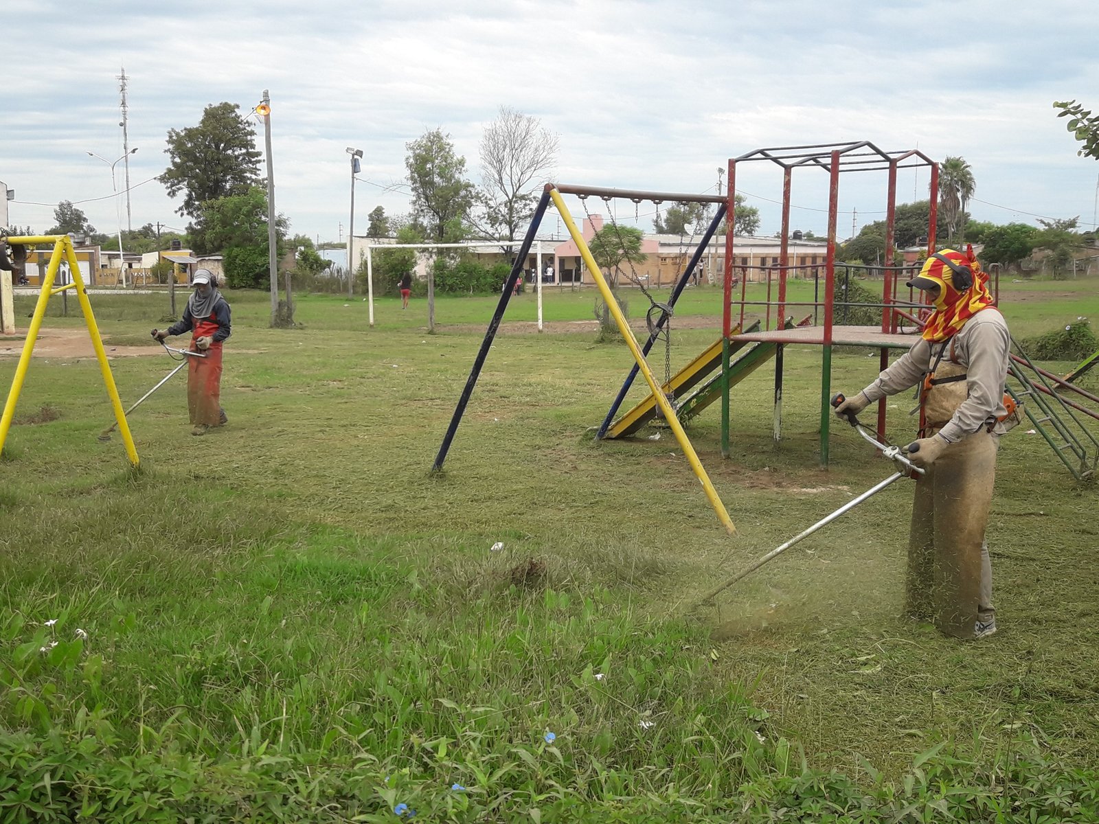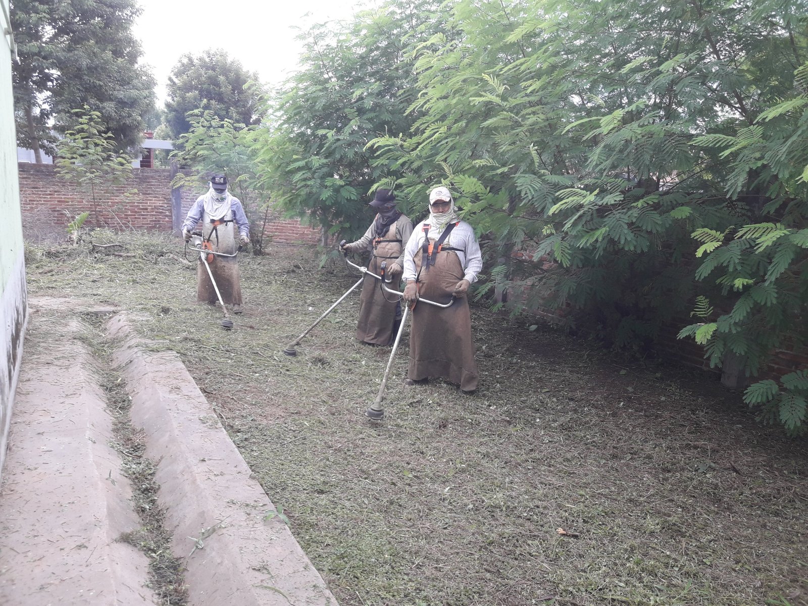Diferentes cuadrillas de motoguadañistas realizan tareas en Establecimientos Educativos que han solicitado dichos trabajos.