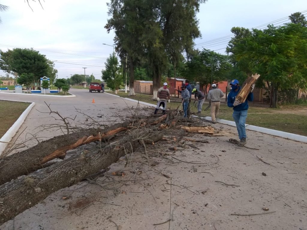 Las Secretarías de Ambiente a cargo del Prof Enzo Ferrari y de Servicios Públicos a cargo de Rubén Chavez trabajan en forma coordinada con personal Municipal en la poda de algunos árboles en la localidad de Zaparinqui.