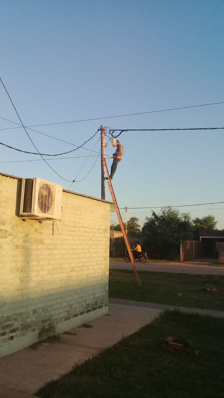 La cuadrilla dependiente de Servicios Públicos Municipal lleva adelante en forma permanente el recambio de lámparas en distintos sectores, principalmente donde los vecinos hacen pedidos en la oficina de Servicios Públicos en forma particular o a través de las comisiones barriales.