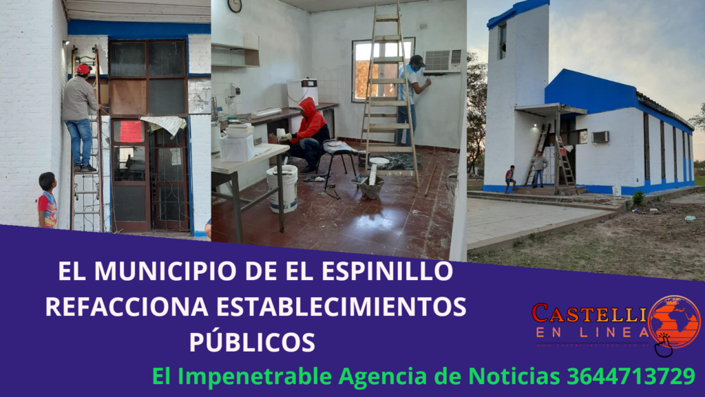 El municipio de El Espinillo está ejecutando trabajos en la Comisaría, Hospital y la Iglesia ubicada en la plaza central, Zenon Cuellar intendente local expreso “Todo este gran esfuerzo se realiza con recursos propios del municipio y de esta forma fortaleceremos la inclusión institucional de la localidad, quiero agradecer y felicitar por el trabajo que se lleva adelante a todos los que de alguna manera colaboran, como así también destacar la coordinación entre las áreas Obras Públicas y Secretaria de Gobierno para ejecutar estas acciones.