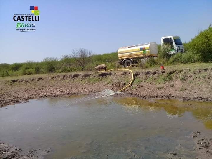A raiz de la nueva sequía que golpea fuertemente a la zona rural, el Municipio de Juan José Castelli a través de la Secretaría de la Producción con la colaboración de la Secretaría de Servicios Públicos, realiza el acarreo de agua para los productores.