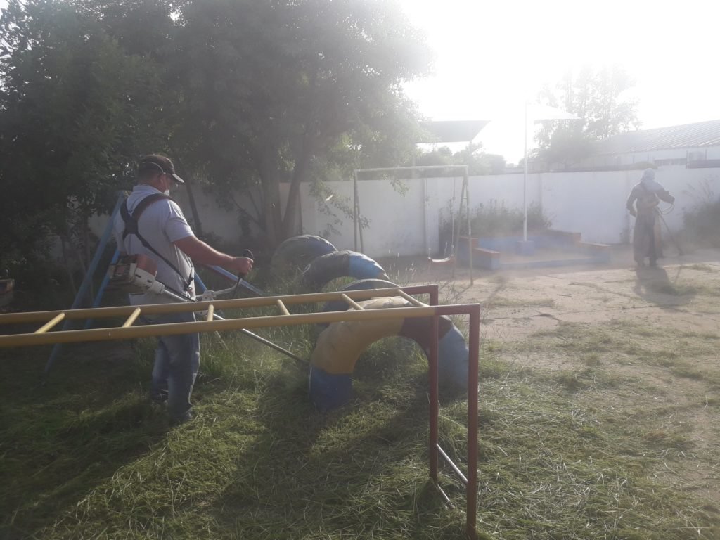 A través de la Subsecretaría de Relaciones con la Comunidad a cargo de Fabricio Benítez, el personal Municipal lleva adelante tareas de desmalezado, limpieza y mantenimiento de Establecimientos Escolares.