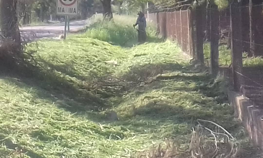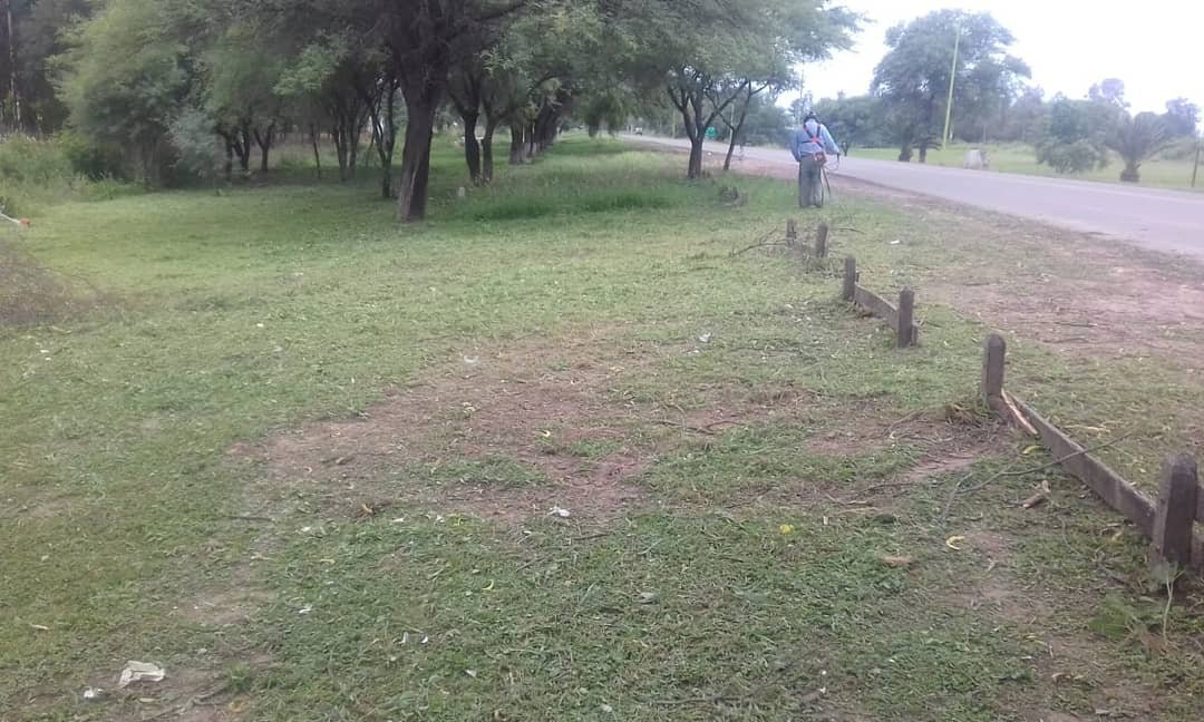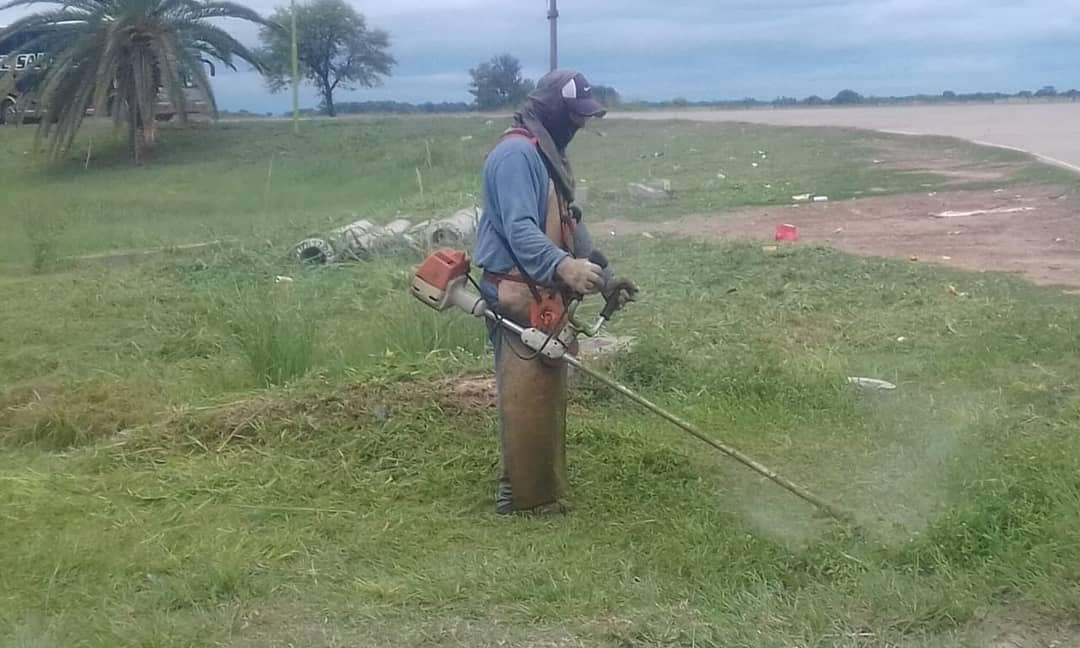 Las cuadrillas de empleados municipales dependientes de la Secretaría de Servicios Públicos a cargo de Ruben Chavez llevan adelante tareas de limpieza y desmalezado con motoguadañas.