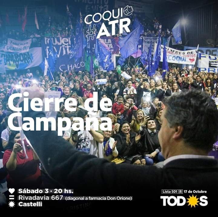 A partir de la semana siguiente el cuarto cierre se realizará el lunes 5 en Machagai, también frente a la sede partidaria en la esquina de Suligoy y Mariano Moreno.