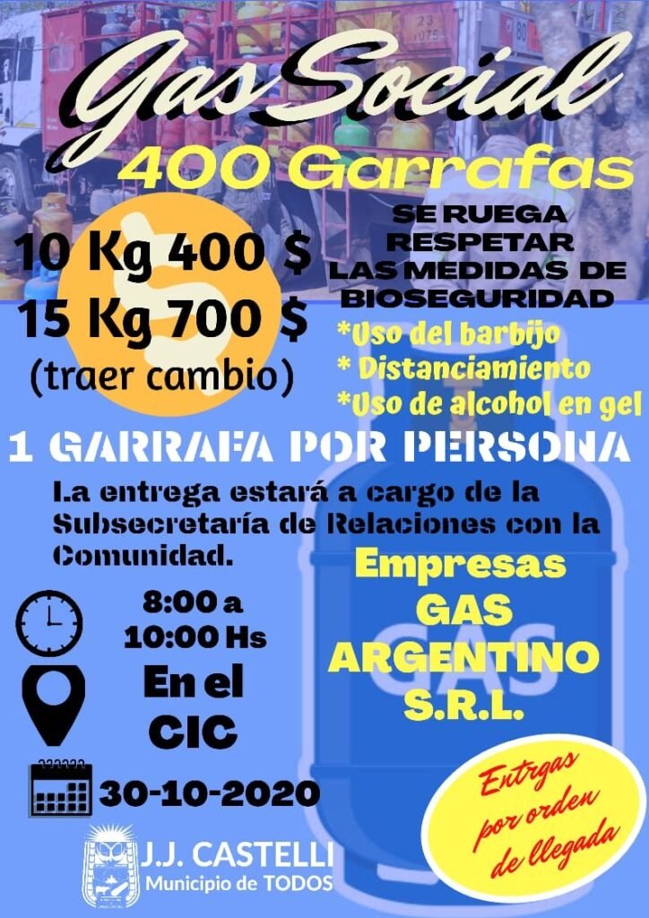La entrega será por orden de llegada, una garrafa por persona y se solicita respetar las medidas de bioseguridad sanitaria.