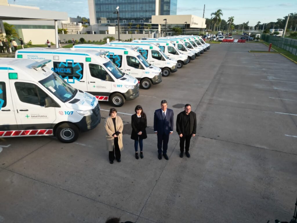 En la jornada entregaron además 12 ambulancias de un total de 54 que serán adquiridas por la Provincia y que pasarán a constituir un parque de 303 transportes de traslado, lo que implicará una inversión total de casi 2 mil millones de pesos. “Es el máximo nivel de adquisición de estos vehículos en la historia de la provincia”, valoró el gobernador.
