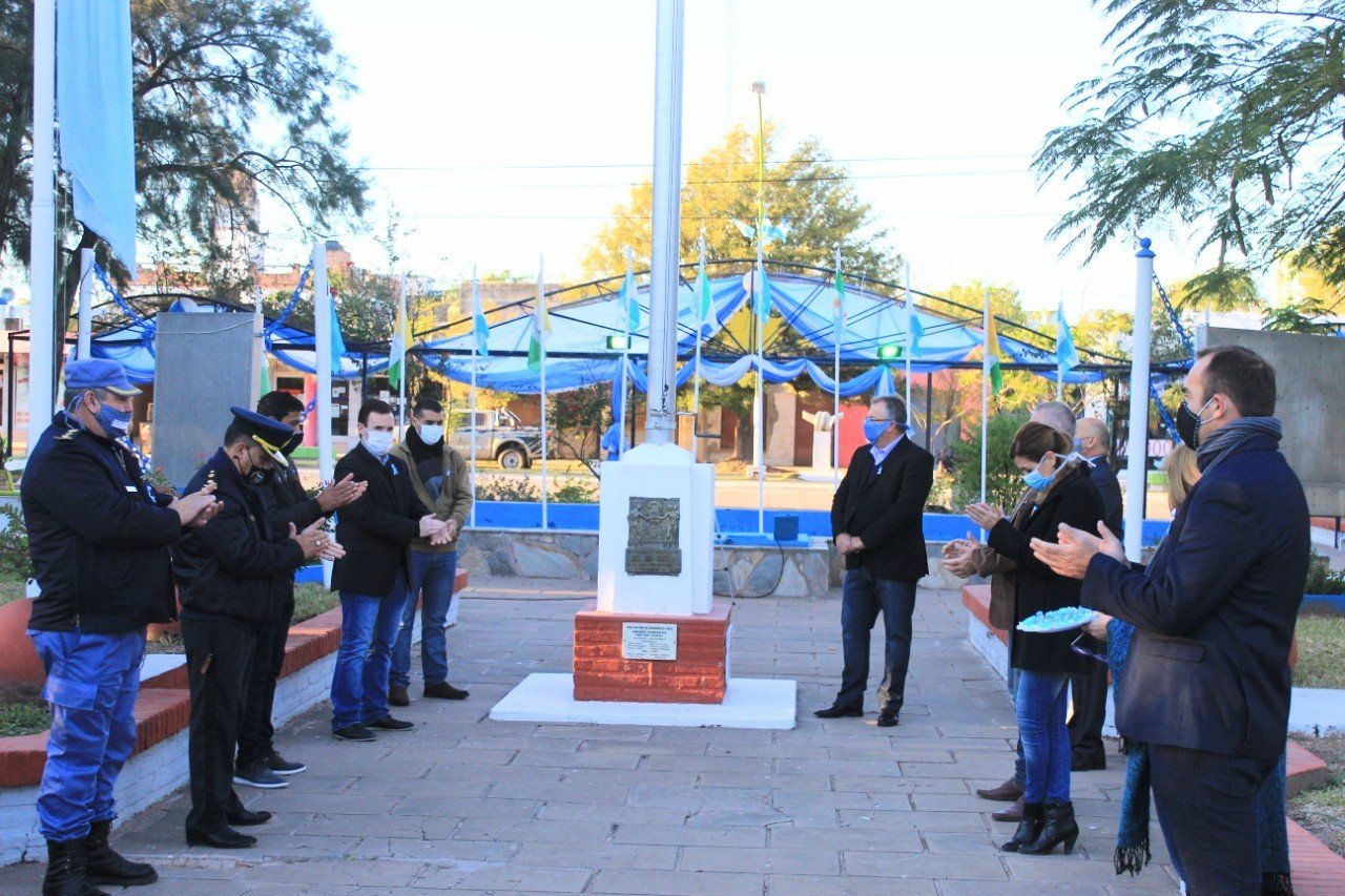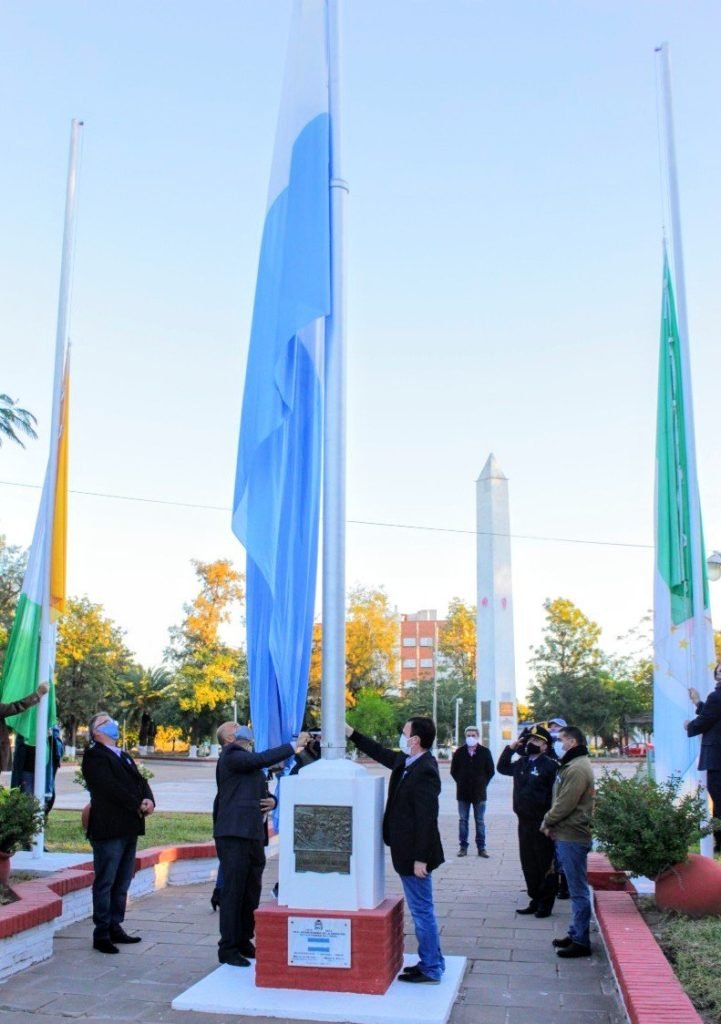 A primera hora el Intendente Pio Oscar Sander acompañado por la Presidenta del Concejo Soledad Rach, el Secretario de Gobierno Ismael Pablo Barnes, el Concejal Ortiz, el Comisario Mayor de Zona Interior Juan Domingo Penayo, el Comisario Inspector Pedrozo, el Secretario de Ambiente Enzo Ferrari, el Secretario de Desarrollo Social Javier Bender, la Secretaria de Cultura y Turismo Silvia Andorno, realizaron el Izamiento del Pabellón Nacional en el marco por la Celebración de los