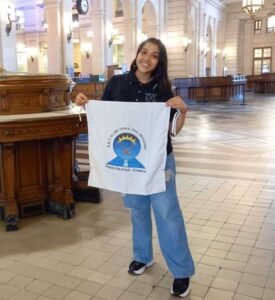 Así Maria Belen Farreyra acompañada por su profesora guía recibió en el Salon Dorado de la Legislatura Porteña pudo participar del acto de premiación. Y fue habilitada participar de la segunda instancia de concurso con la presentación del “proyecto de inclusión social y construcción de la convivencia social en la escuela” .