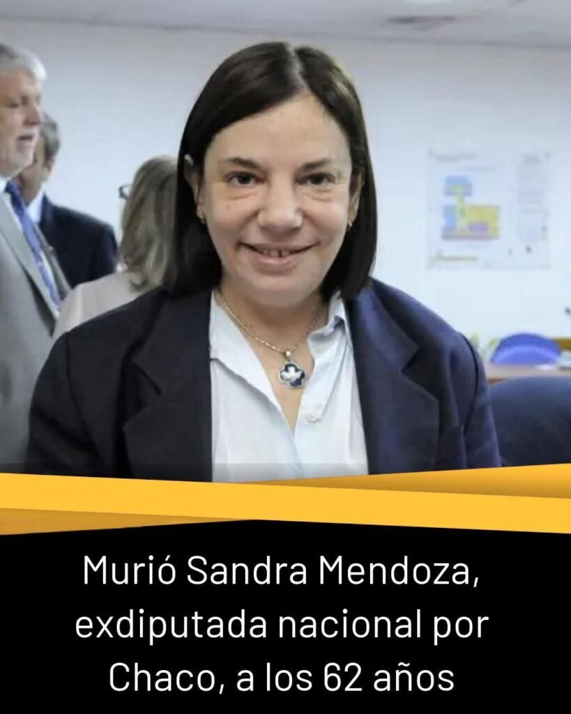 Murió Sandra Mendoza, exdiputada nacional por la provincia del Chaco y reconocida dirigente del peronismo chaqueño, a los 62 años tras permanecer internada por complicaciones de salud en una clínica de Buenos Aires.