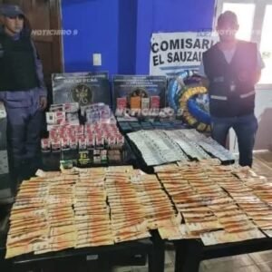 En un domicilio ubicado sobre calle Hugo Ullman, en Castelli, los agentes secuestraron tres tel茅fonos celulares, una balanza de precisi贸n y 106.000 pesos en efectivo, elementos que ser谩n analizados como parte de la causa. El segundo procedimiento se llev贸 a cabo en una vivienda situada en avenida Tero, en El Sauzalito, donde se incautaron 19 cartones de cigarrillos Rodeo, 64 paquetes sueltos, cuatro celulares, dos pendrives, tarjetas de d茅bito y cr茅dito a nombre de distintas personas, un posnet, un kilogramo de hoja de coca y diversos electrodom茅sticos, adem谩s de cuatro cajas de cartuchos.