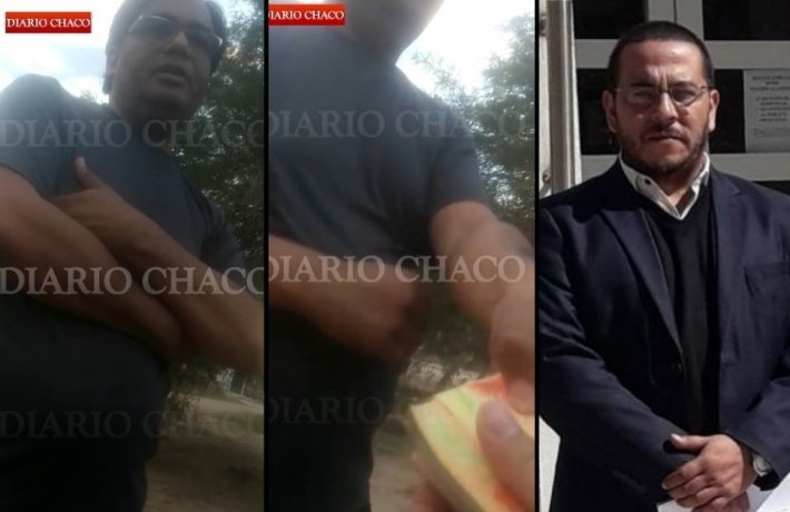 Juan Carlos Alarcón – Captura de la cámara oculta y foto sacada de su cuenta de Facebook “Apenas efectivizada la detención de Adrián en fecha 11 de febrero del corriente, el prosecretario Juan Carlos Alarcon, junto a la Psicóloga Florencia Terencio, del Juzgado Multifueros, me citan a la plaza principal de la localidad de Misión Nueva Pompeya, allí le manifestaron que debía pagar dinero para que salga su hermano y que estaríamos en contacto por cualquier novedad a través de comunicación telefónica”, señala también el escrito.