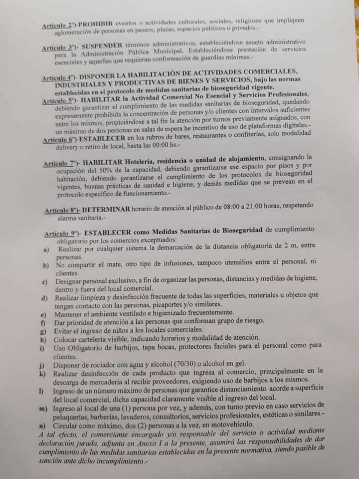 Estas medidas referidas a las actividades de comercio y servicio no exceptuados, fueron tomadas mientras se contin煤a con la ejecuci贸n de un plan integral de regulaci贸n de aislamiento preventivo, social y obligatorio, equilibrando la salud de nuestra poblaci贸n con su econom铆a, priorizando siempre la prevenci贸n sanitaria.