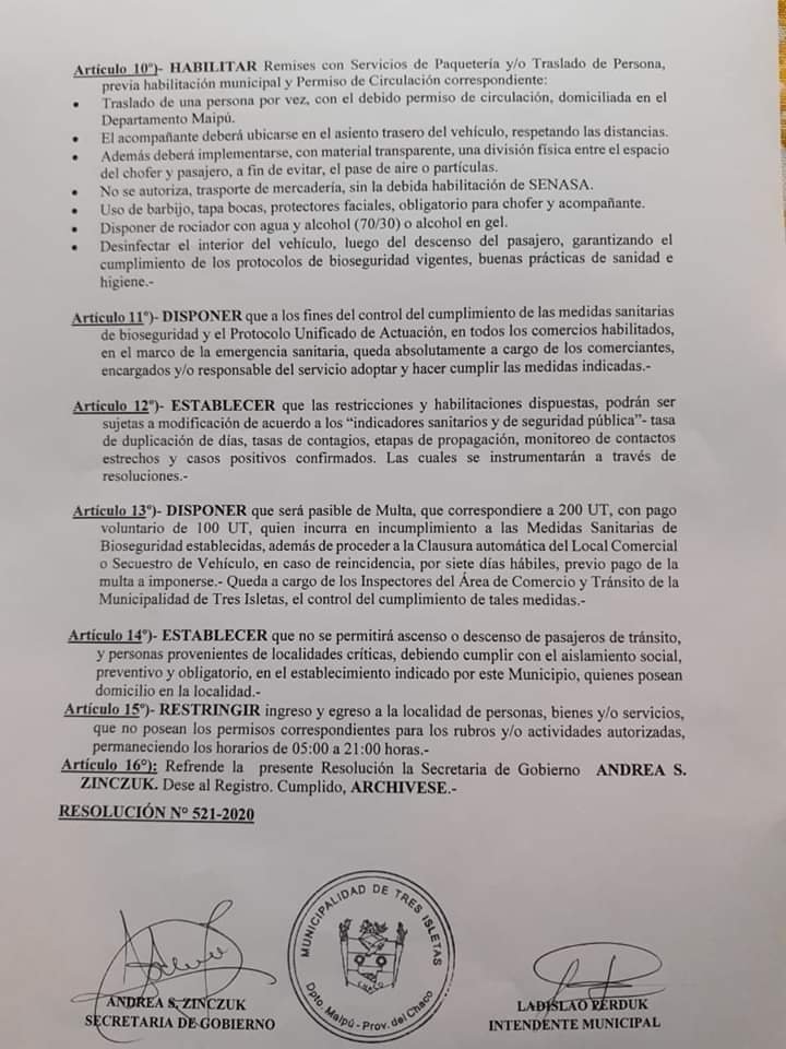 En el marco de la emergencia sanitaria por COVID-19 y en adhesi贸n al Decreto de la Provincia del Chaco, a trav茅s de la Resoluci贸n 521-2020 a partir de este viernes 26 y hasta el pr贸ximo domingo 28 de junio el Municipio habilita las actividades comerciales no esenciales y servicios profesionales.