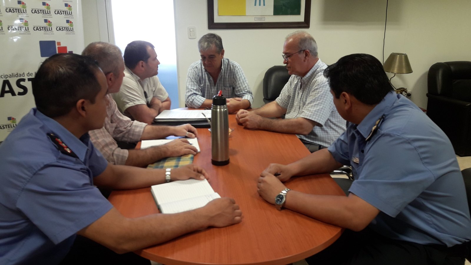 El Intendente Oscar Alberto Nievas junto a los Secretarios de Gobierno Jorge Seu y de Ambiente Enzo Ferrari recibi贸 a Juan Jose Trokun de Infraestructura Aeroportuaria de la Direcci贸n de Aeron谩utica, el Comisario mayor Miguel 脕ngel Coronel Supervisor de Zona Interior J.J.Castelli , Oficial Principal Mauricio F. Bravo – Divisi贸n Bomberos J.J. Castelli y el jefe de Vialidad delegaci贸n Juan Jos茅 Castelli Ing Carlos Kutnich.
