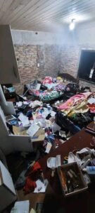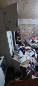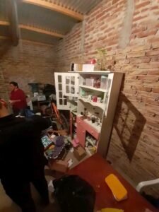 En el lugar no se observan signos de violencia, únicamente desorden de prendas de vestir y objetos varios. En la parte superior exterior de puerta de acceso a la vivienda, se halla cámara de filmación instalada fuera de funcionamiento.