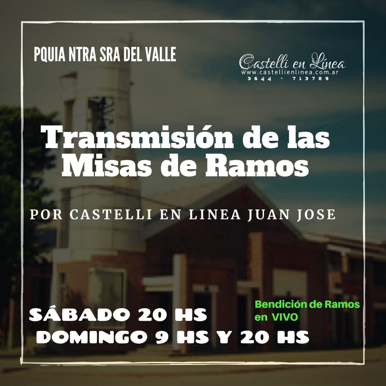 Por ello las Misas de Bendición de Ramos serán transmitidas en vivo y directo por el Facebook Castelli en Linea Juan Jose acercando asà a los feligreses la posibilidad de la Bendición desde sus hogares.