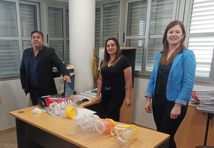 A solicitud del Dr Hugo Obregón, Dra Liliana Senger y Dra Natalia Gamarra, integrantes de la Asociación de Magistrados y Funcionarios Judiciales de la VI Circunscripción, la Escuela de Educación Técnica N° 12 de Castelli hizo entrega de 40 protectores faciales para ser utilizados por personal del Poder Judicial que brinda el Servicio Judicial de Urgencia implementado por el Superior Tribunal de Justicia de la Provincia.