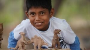 La historia del niño Jonatan Paz, nacido en el lejano pueblo de Miraflores, al norte de Resistencia, capital de la provincia de Chaco, es una caricia como la del sol. Mientras al domingo le quedan unas horas, y él con su papá completa su estadía con visitas, nunca dejarán de recordar al Museo de Ciencias Naturales de La Plata. Hasta allí llegaron luego de que un colectivo los transportó desde el viernes a las 19.30 hasta la terminal de Retiro a las 8 del sábado, día en que recibieron un premio y mucho más que eso. Jonatan, de 13 años, y Benigno Paz, su padre, de 43, guardan el afecto de cada integrante de la Fundación Museo, que pensó en el pequeño provocando la admiración por su creatividad, en contacto con el barro, dando forma a pequeños dinosaurios sin más maestro que el de su corazón.