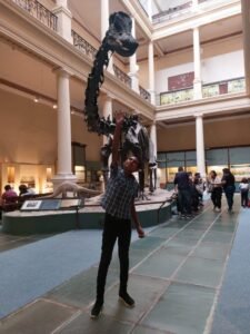 Esa pregunta ya tuvo su primera respuesta concreta, la salida más lejana, después de aquella que hizo a Corrientes. La ciudad de La Plata alcanzó uno de esos sueños, y “nuevos amigos” llegaron a su vida, todos profesionales, gente mayor, Analía Lanteri, directora del Museo, Luis Mansur, presidente de la Fundación, y las dos guías expertas que lo llevaron a recorrer la institución, como Hugo López y Eduardo Tonni. La fantasía infantil de pronto se las vio «ante tantos huesos». Esos reptiles que solo conocía por algún videos, o aquellos de goma que vienen en alguna colección.