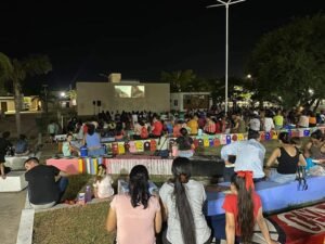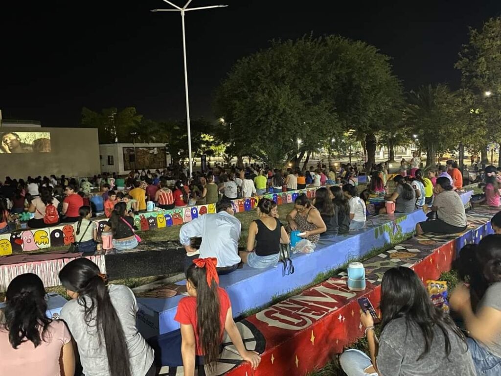 LAS FAMILIAS DE CASTELLI SIGUEN DISFRUTANDO DEL CINE DE VERANO GRATUITO EN EL ANFITEATRO DE LA PLAZA SAN MART脥N