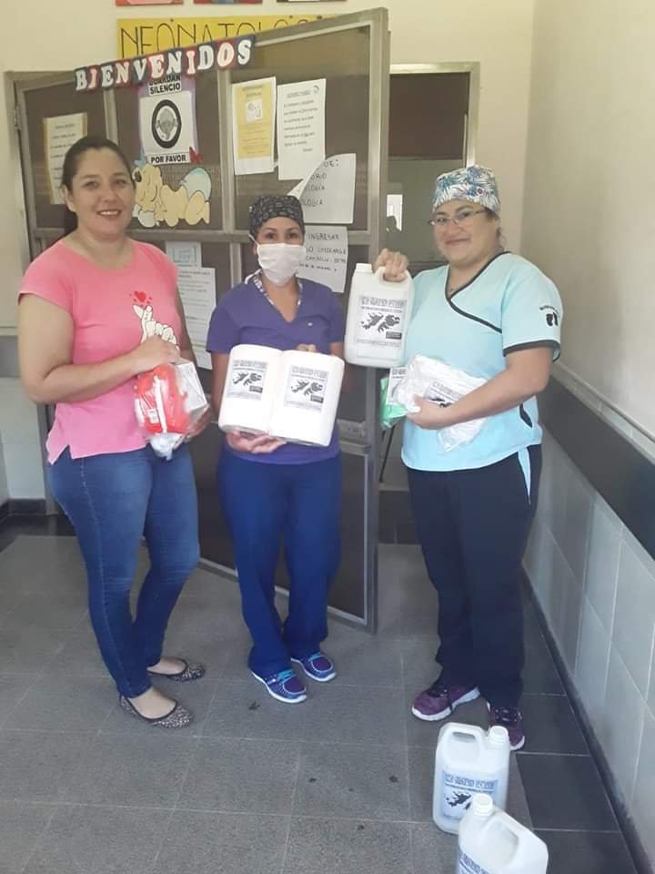 LOS HIJOS DE VETERANOS DE MALVINAS ENTREGARON ELEMENTOS DE HIGIENE AL HOSPITAL DEL BICENTENARIO