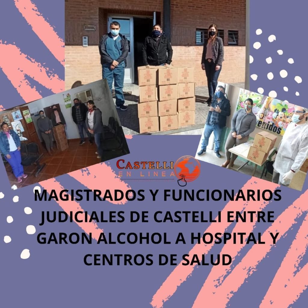 MAGISTRADOS Y FUNCIONARIOS JUDICIALES DE CASTELLI ENTREGARON ALCOHOL A HOSPITAL Y CENTROS DE SALUD