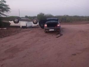 El Día Miércoles 20/09/23, a Horas 18:15, personal de la Comisaría Miraflores, tomo conocimiento sobre un accidente de tránsito ocurrido en camino vecinal del Paraje Balbuena. Constituida la prevención al lugar, constató la veracidad de la información, tratándose de vehículo marca Renault, modelo Sandero, con daños sector frontal, guiado por un joven de iniciales M.B., (23), acompañado de una joven S.L. (14 años) y C.E. (18 años) y en tanto la otra parte resulto ser una camioneta marca Toyota modelo Hilux cual se hallaba “volcada”, con daños sector lateral derecho, guiada por un ciudadano C.M., (77) acompañado de su pareja D.C. (73) Y y M.F.(64); todos los partícipes fueron trasladados en ambulancia y vehículos particulares hasta el hospital local.
