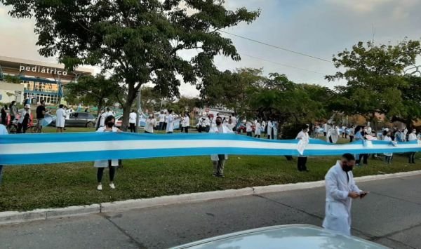 Multitudinaria manifestación de profesionales de la salud en reclamo a la situación laboral: «Todos somos uno»