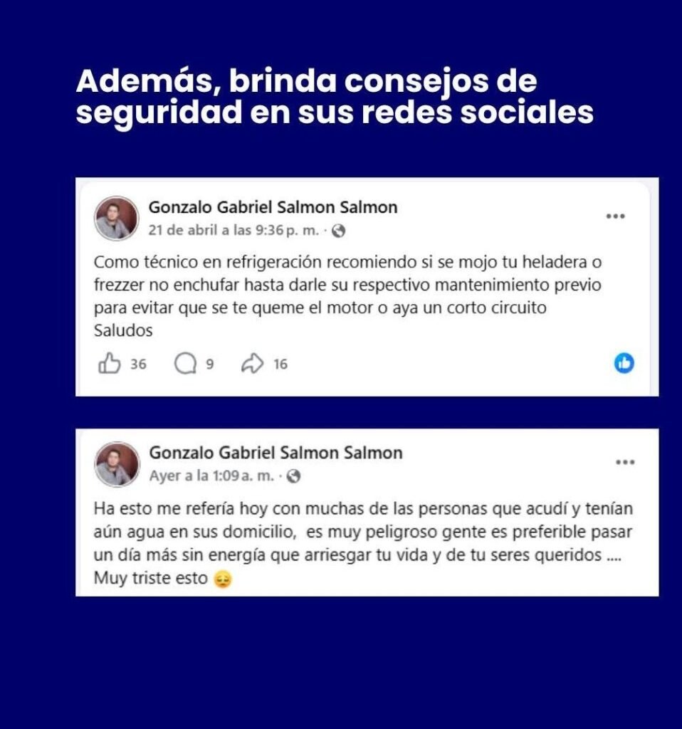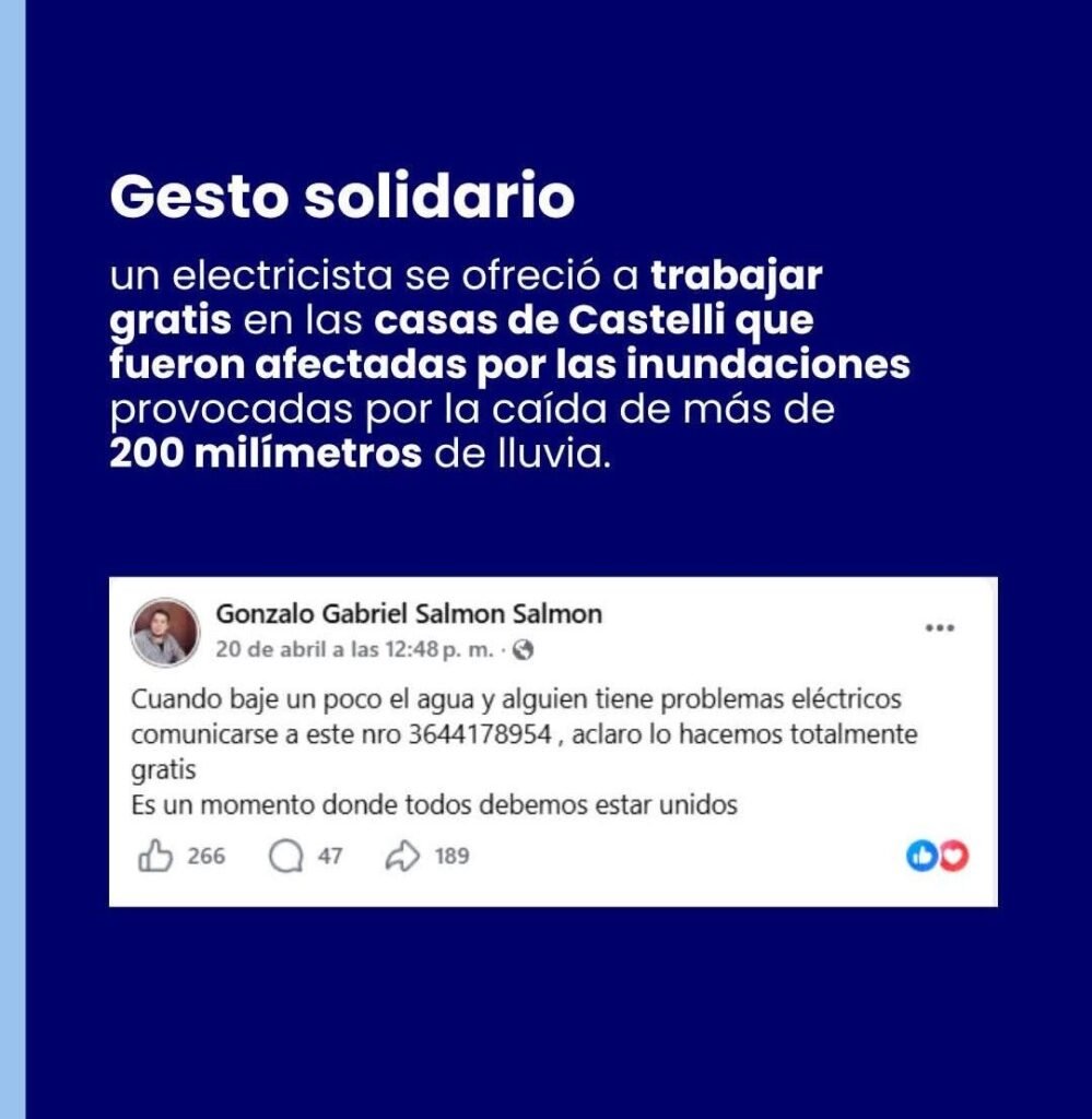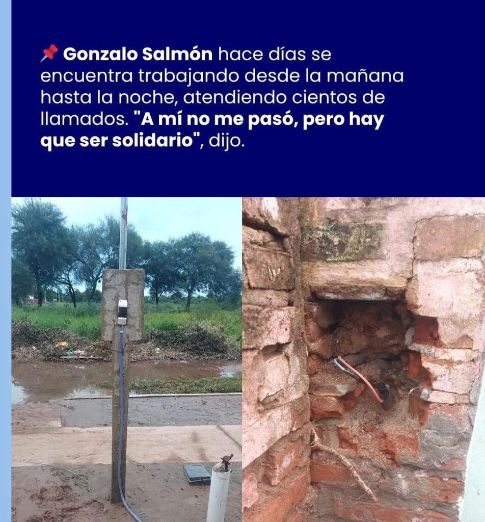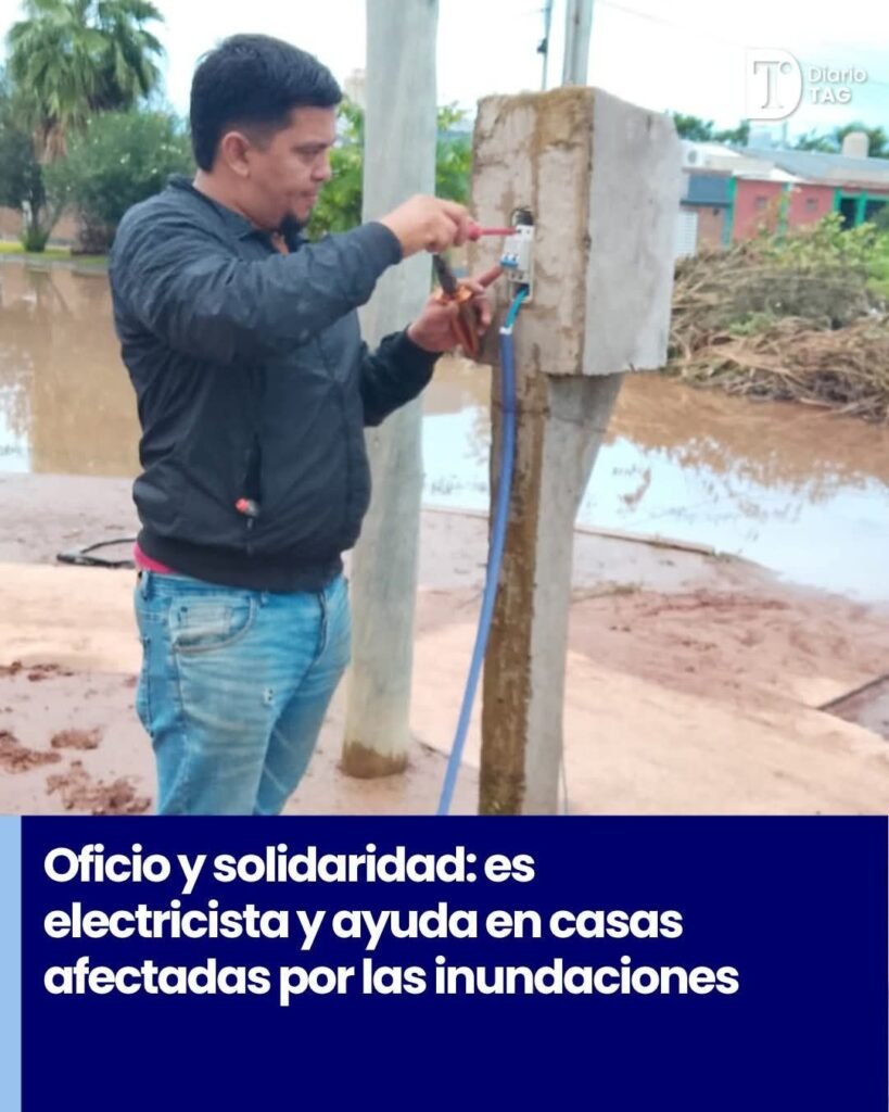 Gonzalo Salmón es un electricista de Juan José Castelli que se ofreció a trabajar en las viviendas que se vieron afectadas por las inundaciones en la zona.