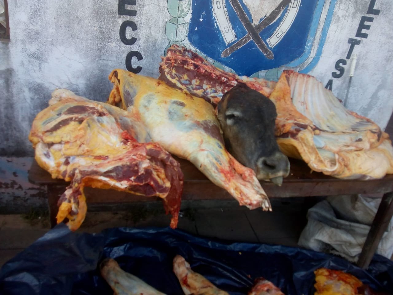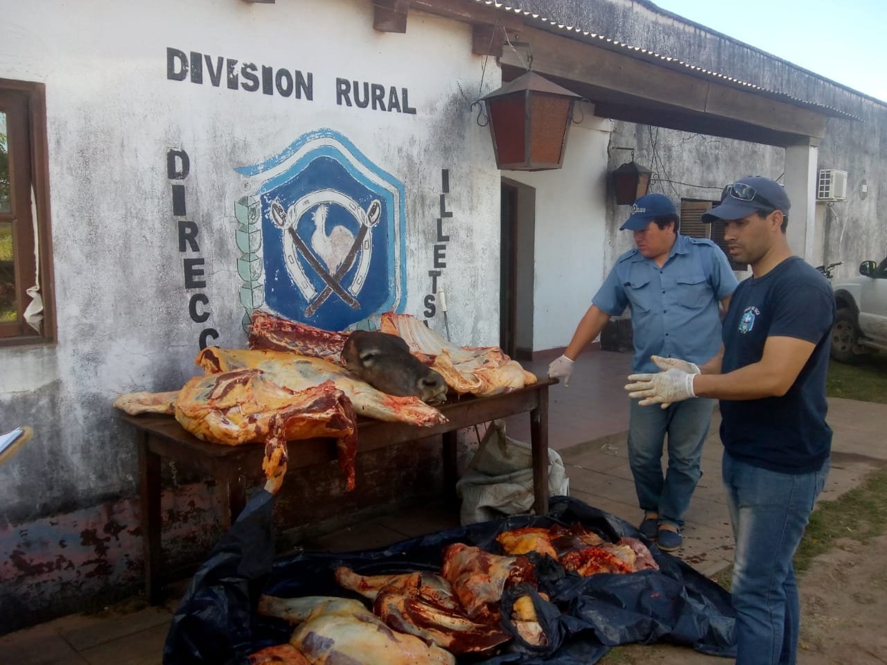En Paraje la 4 Bocas La Florida Grande, distante a 30 kilómetros aproximadamente de Castelli, donde se efectuó control vehicular, sobre camino vecinal, logrando interceptar una camioneta Chevrolet modelo S-10 color blanca, ocupada por cuatro masculinos. Constatando en parte de la caja, bultos grandes de lona de nylon color negra y bolsas de polietileno, ambas con manchas rojizas similar a sangre, tratándose de unos 240 kg aproximadamente de un animal vacuno faenado, producto que no contaba con cadena de frio, en la caja del rodado con tierra procediéndose a su formal secuestro, y conducción de los masculinos mencionados hacia hospital de esta localidad y luego de examen médico entregados a la guardia de prevención de la Unidad policial. Consultado magistrado actuante dispuso notificarlos de acta de contravención y que permanezcan alojados en esta División, día viernes 12-04-19 en horas de la mañana sean conducidos junto a respectivos actuados ante esos estrados, a los fines legales pertinentes, también dispuso que el producto cárnico bovino sea incinerado por no ser apto para consumo humano. En tanto los elementos secuestrados, como ser rodado, y otros, permanezcan en esta división a disposición de dicha instancia policial.