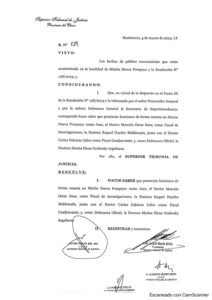 A partir del 5 de marzo y hasta tanto las autoridades competentes garanticen plenamente la seguridad e integridad física de las personas y de las instalaciones y pueda asegurarse el funcionamiento normal del Poder Judicial en Misión Nueva Pompeya, prestarán funciones en forma remota en dicha localidad las siguientes autoridades judiciales: Marcelo Oscar Sosa, juez; Raquel Maldonado, fiscal de investigaciones; Carlos Calvo, fiscal coadyuvante y Marisa Grabosky, defensora oficial.