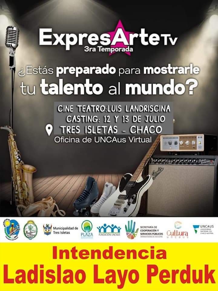 Este jueves en horas de la Mañana, se llevó adelante la Conferencia de Prensa en el Cine Teatro Luis Landricina, por el evento EXPRESAR TV, MOSTRÁ TU TALENTO, tras firma del convenio de Cooperación entre las dos Instituciones. Por la UNCaus (Universidad del Chaco Austral) representaron Martín Araujo (Coordinador Medios Audiovisuales y Productor General), Óscar Mujica (Secretario), y Marcos Abreu (Coordinador de Cultura), por el Municipio estuvieron el Intendente Layo Perduk, la Presidente del Concejo -Profesora Nilda Campos, la Concejal Radical-Lorena Ruth Petryszyn, y los Coordinadores Nelson Claudio Nardelli y Andrea Zinczuk. Entre otras cosas se estableció como fecha de Casting el 12 y 13 de Julio en el CINE-TEATRO. Tres Isletas será sede Norte para la convocatoria Regional. De los 30 artistas preseleccionados, se elegirá una fecha, posiblemente los días 16 y 17 de Agosto, para la elección de los finalistas. Evento que será realizado en el Paseo Ecológico de la Juventud, previo al 82° Aniversario de Tres Isletas. Dicho Convenio Marco establece Cooperación Mutua entre las Instituciones con el fin de acompañar, y divulgar la Cultura. «Es primordial conocer y mostrar nuevos valores en todas las disciplinas (folklore, canto, telas aéreas, rap, cumbia, etc.). Tres Isletas seguirá acompañando a los Artistas Locales y Regionales para que sus talentos sean escuchados por la Comunidad. Me siento muy emocionado por traer este Evento». Expresó Ladislao Perduk. Por su parte Martín Araujo manifestó que pretenden convocar a más de 700 Artistas, y que el apoyo logístico del Municipio es importante para llevar adelante la Tercer Edición de Expresar TV.