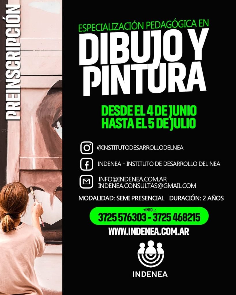 - Especialización Pedagójica en Dibujo y Pintura con modalidad semi presencial y duración de 2 años, pre inscripciones del 04 de junio al 05 de julio.
