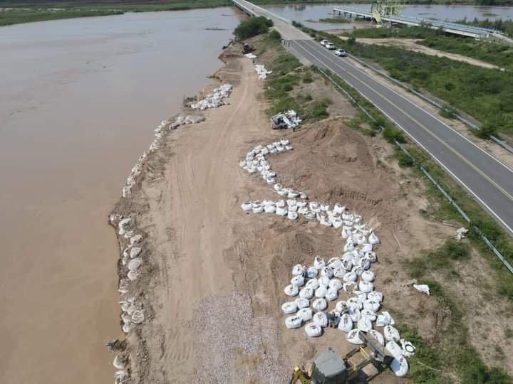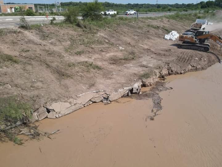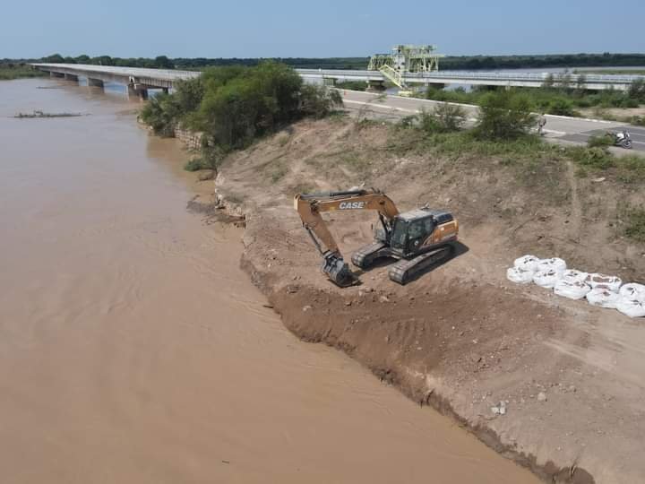 ✅“Estamos colocando bolsones con piedra sobre la barranca que va dejando el rio, e instalamos bloques de hormigón para contener que no erosione más. En la zona trabaja personal de la Delegación de Vialidad de Castelli y de Resistencia con equipos viales como retroexcavadora, cargador frontal, mini cargadora, camiones, y bateas”, indicó.
