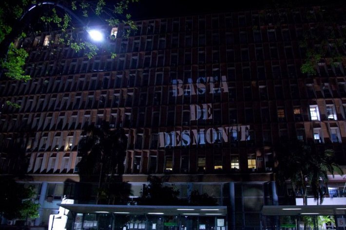 REALIZARON PROYECCIONES EN CASA DE GOBIERNO CONTRA EL ACUERDO PORCINO Y LOS DESMONTES