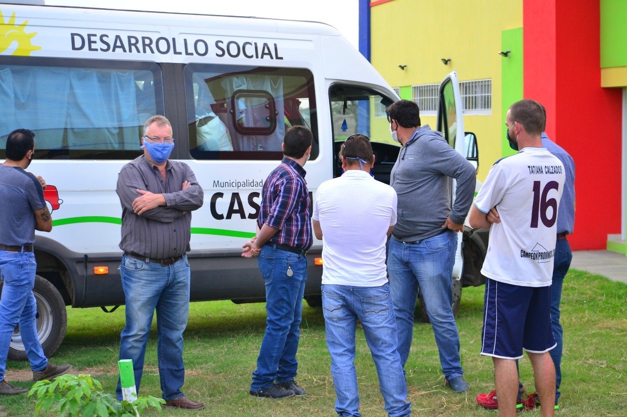 El intendente Pio Oscar Sander acompañado del Secrerario de Gobierno Ismael Pablo Barnes, el Secretario de Desarrollo Social Javier Bender, el Subsecretario de Deportes Roberto Scheffer, la Directora de Zona Sanitaria V Paula Sartor, asistieron desde horas muy tempranas para participar del regreso a casa.