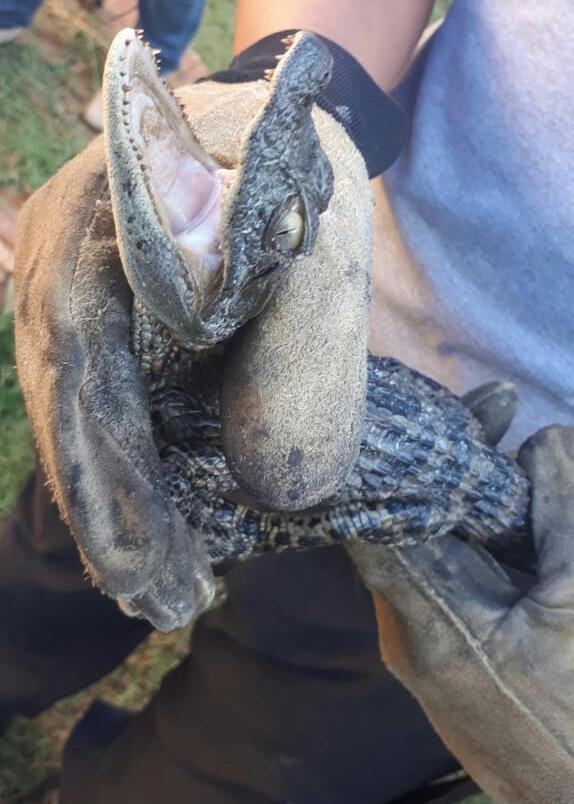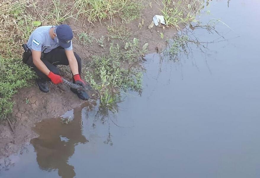 RESCATARON UN PEQUEÑO YACARÉ Y LO LIBERARON EN UN CANAL HACIA EL MALHA’