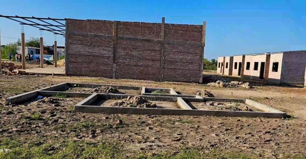 viviendas, aperturas de calles, redes de agua y luz, sistemas de desagües pluviales estructurales y superficiales, espacios verdes y equipamiento comunitario.