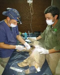 En un trabajo conjunto con guardaparques del Parque Provincial Loro Hablador, investigadores del CONICET del Proyecto Tatú Carreta Región Chaqueña y la ONG CeIBA, se colocó un dispositivo GPS a un ejemplar hembra de Tatú Carreta (Priodontes maximus) bautizada “Rosenda”, a fin de lograr brindar información sobre los movimientos de la especie, de suma importancia para la región y el país, por encontrarse en peligro de extinción.