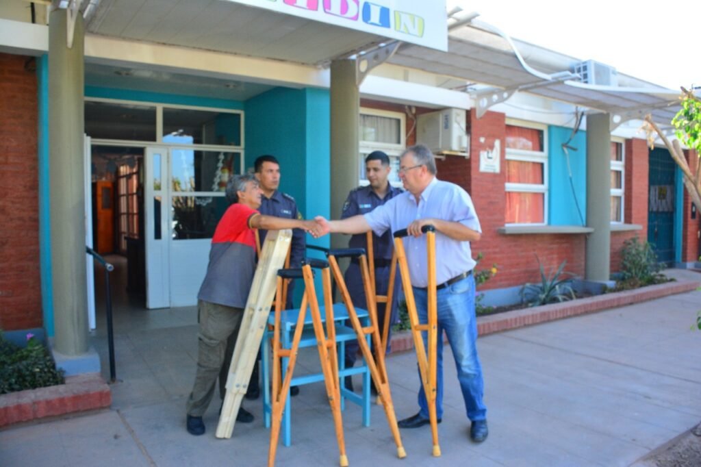 En la jornada de este martes 20 de diciembre el Intendente Sander, junto al jefe de la unidad penitenciaria N°5 Pablo Soto participaron de la entrega de muletas, al presidente del CAIDIN (Centro de Atención al Discapacitado del Norte) Juan Carlos Solís.
