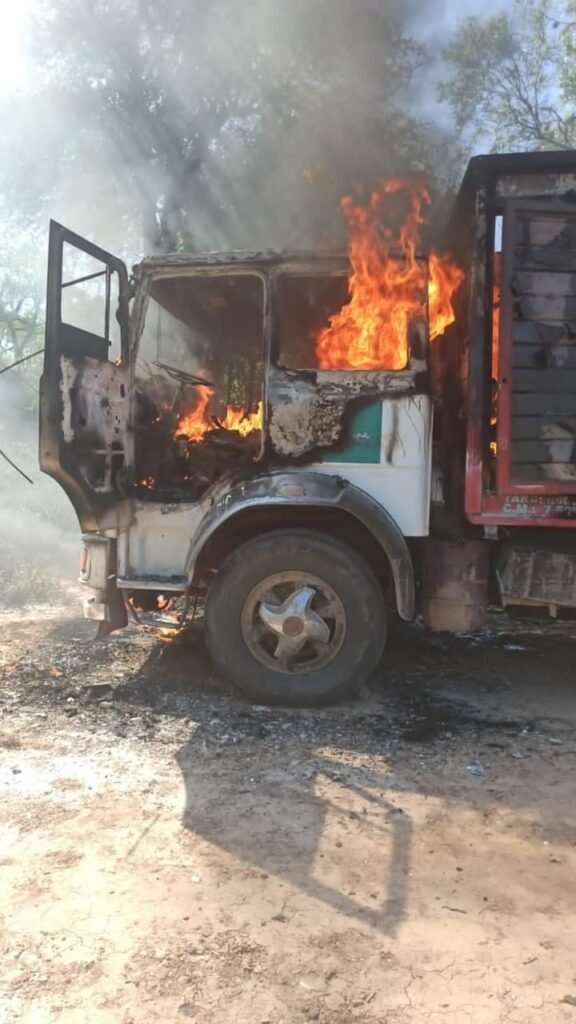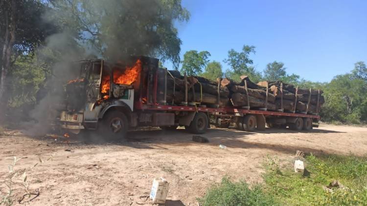 SAUZALITO: SECUESTRARON Y MANIATARON AL CHOFER E INCENDIARON UN CAMIÓN CON ROLLIZOS