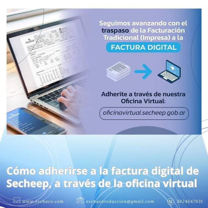 Desde Secheep informaron los pasos para adherirse a la Factura Digital a través de la Oficina Virtual: