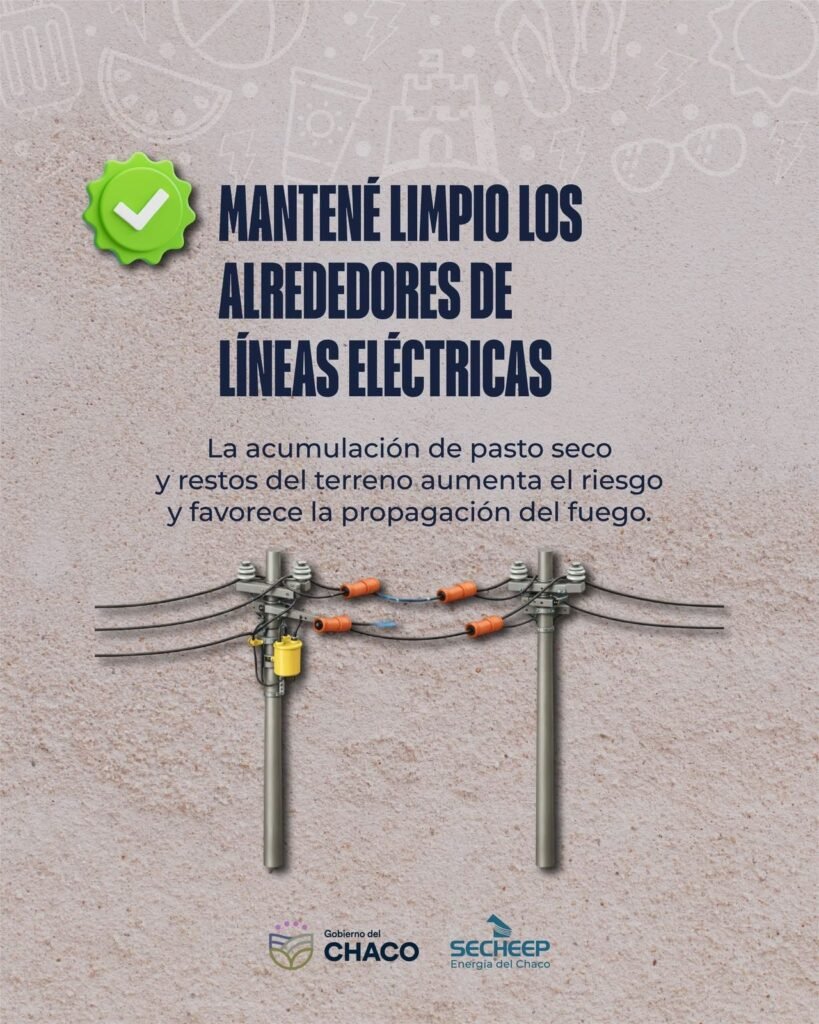 Desde la empresa advirtieron que la quema de pastizales, residuos o basura en zonas cercanas a lĂneas elĂ©ctricas representa un riesgo grave, ya que los incendios pueden provocar daños en transformadores, cables y postes, generando cortes del suministro que afectan a miles de chaqueños.