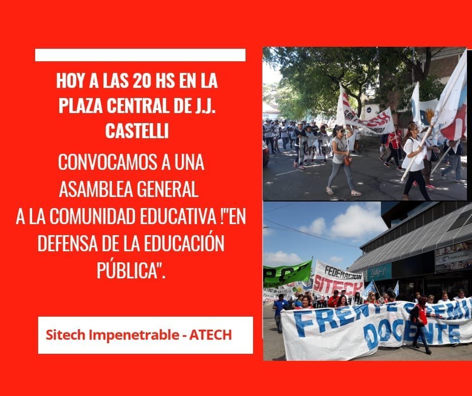 Invitan a docentes, alumnos, padres, colegas, trabajadores en gral de la comunidad. En defensa de la educación pública.